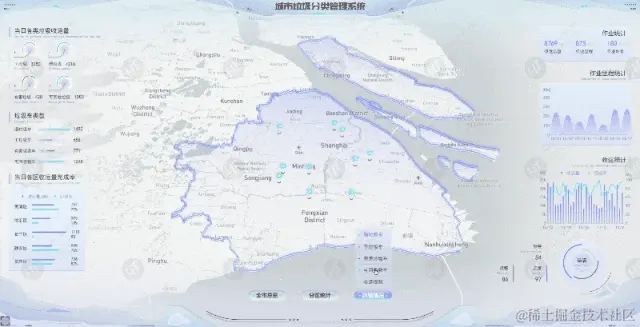 案例以上海市地圖為背景,將上海市 16 個區的垃圾分類情況分別統計,有針對性地進行查看。