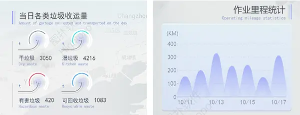 當日各類垃圾收運量、當日各區收運量完成率的統計能為垃圾分類帶來歷史數據的參考,實現垃圾運輸車輛的優化配置。