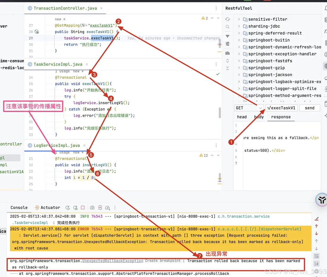 Transaction rolled back because it has been marked as rollback-only 這個異常在上述的案例中是如何實現的呢?