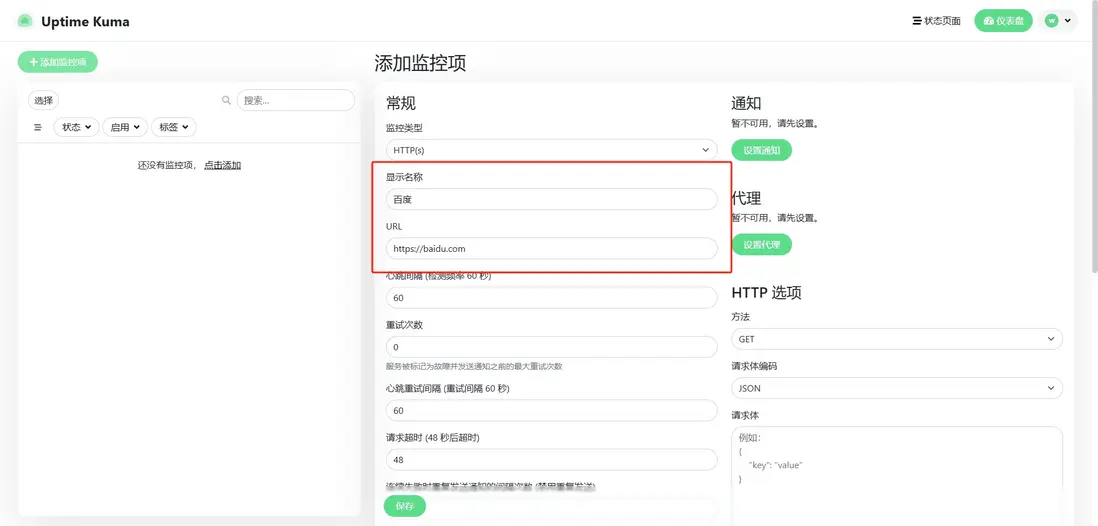 啓動容器後使用IP+端口訪問Uptime Kuma:http://your-server-ip:3001,訪問後對Uptime Kuma進行配置