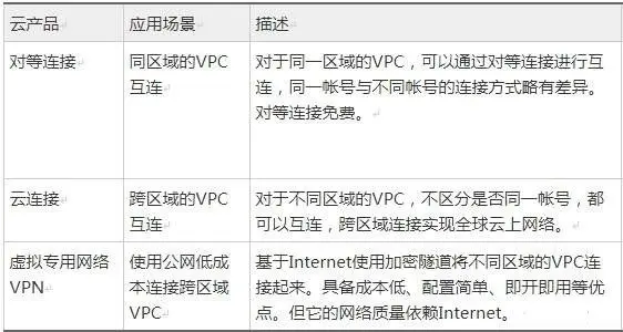 VPC與VPC之間要建立連接,可以通過如下雲產品實現。