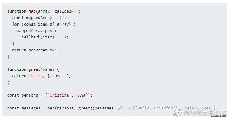 有意思的是 persons.map(greet) 方法可以接受 greet() 函數作為參數。這樣 greet() 就成了回調函數。