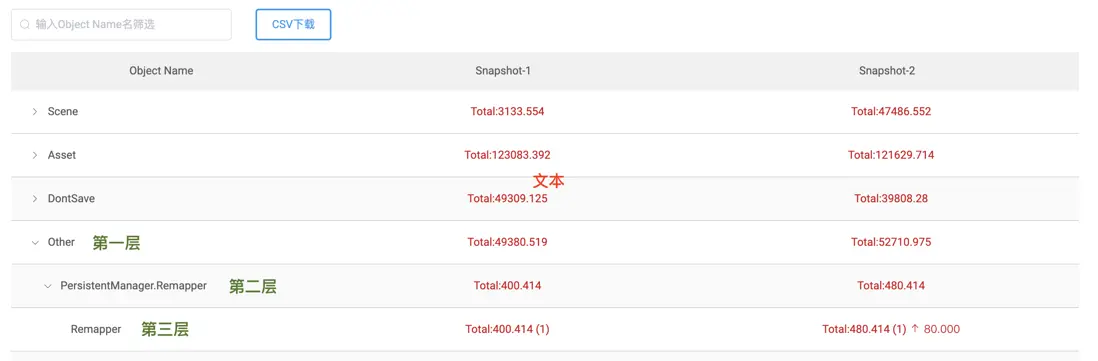 有一個表格,描述的是Snapshot-1和Snapshot-2之間的對比,數據對比的結果是由後端算出來的,前端只要負責渲染就可以。