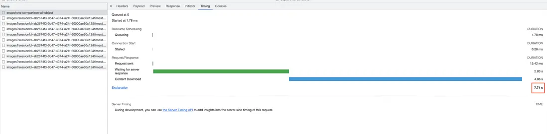- 打開控制枱,看數據返回時間。其實時間不是很長,只有7s,因此,時間的瓶頸不在這裏。