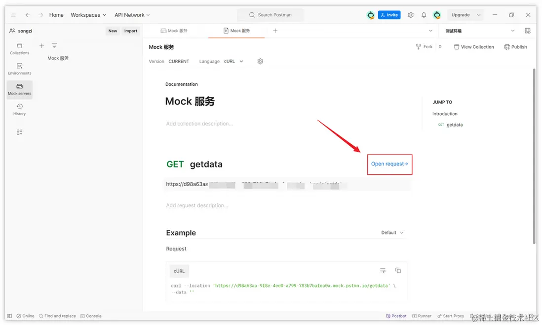 如果需要快速啓動請求測試,可以直接點擊【打開請求】按鈕。這將為開發者提供一個實時的測試環境,使得接口的測試更加方便快捷。