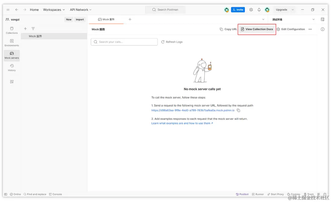 完成 Mock Server 的創建後,單擊【查看集合文檔】鏈接來檢查所有可用的請求路徑。這一步驟是非常關鍵的,因為它可以幫助開發者理解和測試各種API請求。