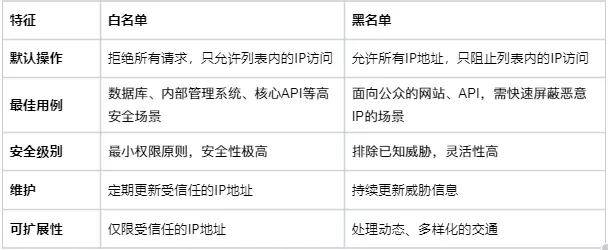 對高安全應用採用白名單模式,精確控制允許訪問的IP