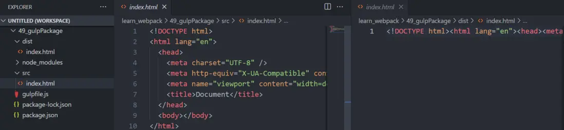 執行 npx gulp htmlTask ,此時將 html 資源編譯輸出到 dist 文件夾下
