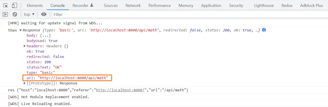 請求成功並獲取響應,但此時我們發現請求url地址多了個 "/api",以及請求源地址還是 8000端口