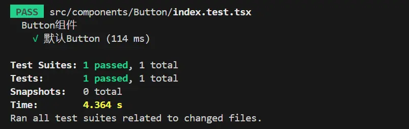 然後在 Button 文件夾下增加 index.test.tsx 文件編寫測試用例,先判斷是否成功渲染一個 Button 組件。