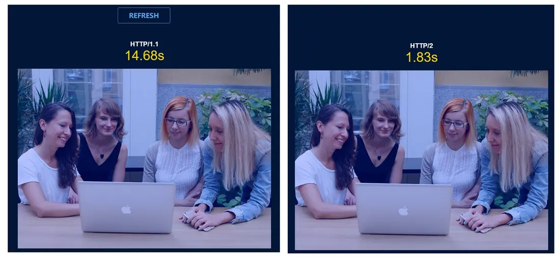 在 HTTP/2測速網站中,可以看到 HTTP/2 和 HTTP/1.1 對比170張32*48像素的小圖組合成的大圖加載速度的時長對比。那為什麼會存在如此大的差異呢,在於HTTP/2在很多方面做了調整。