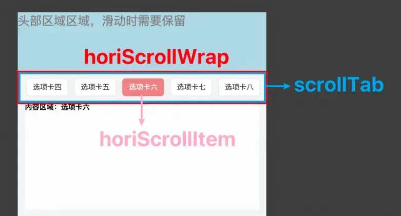 ★ 橫向可滑動的導航欄是 horiScrollWrap ,實現吸頂功能需要設置粘性定位。