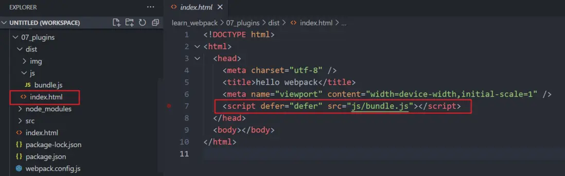 通過 npm install html-webpack-plugin -D 安裝依賴,並在 webpack.config.js 中配置