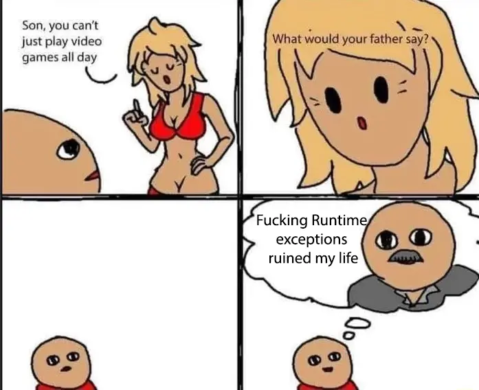 最常見也是個人最悲觀的例外:運行時。Checked 和 Error 異常錯誤不會導致任何代碼更改。但是,在大多數情況下,運行時異常突出了代碼中的真正問題,如果不重寫代碼就無法修復這些問題。讓我們通過查看最流行的運行時異常來找出原因: