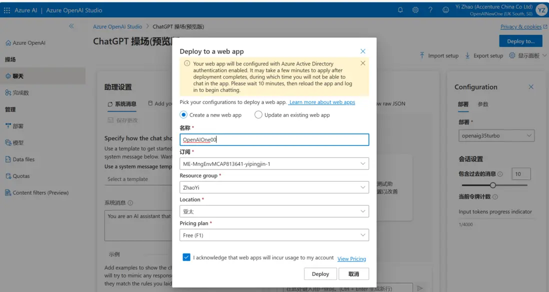 - 在所需的 Azure 訂閲中授予 Azure OpenAI 的訪問權限。