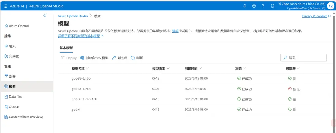 導航到 Azure OpenAI Studio https://oai.azure.com/,並使用有權訪問 OpenAI 資源的憑據登錄。在登錄工作流期間或之後,選擇相應的目錄、Azure 訂閲和 Azure OpenAI 資源。