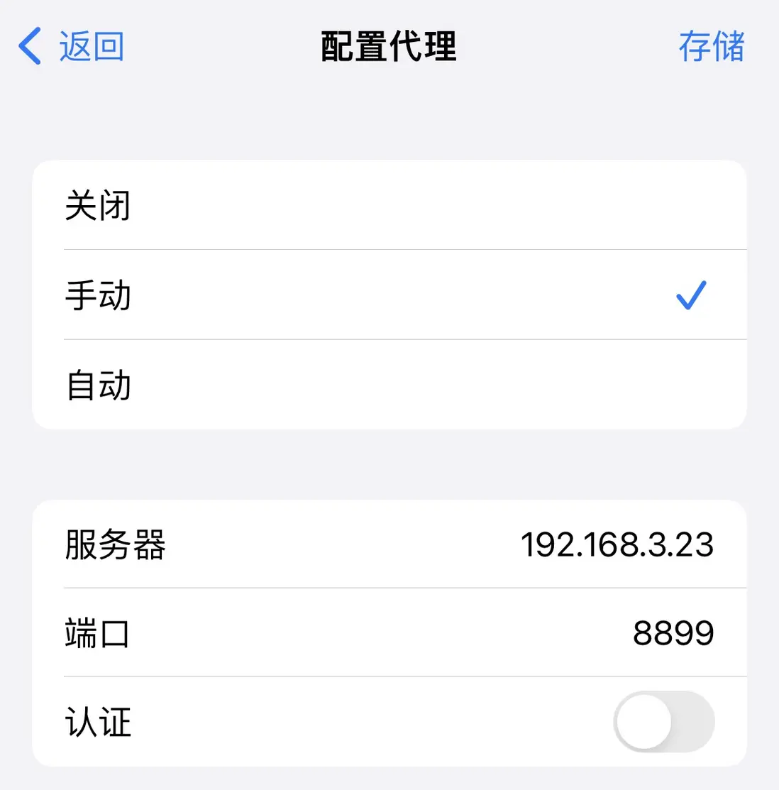 查看主機ip後,打開手機找到和主機同一WiFi,點擊代理設置,將ip和端口輸入後保存: