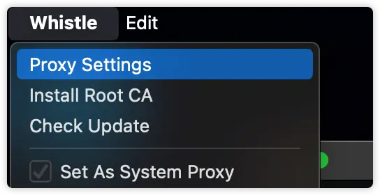 手機抓包已經成了很常用的功能,那麼在whistle中操作也非常簡單,也是點擊菜單欄Proxy Settings: