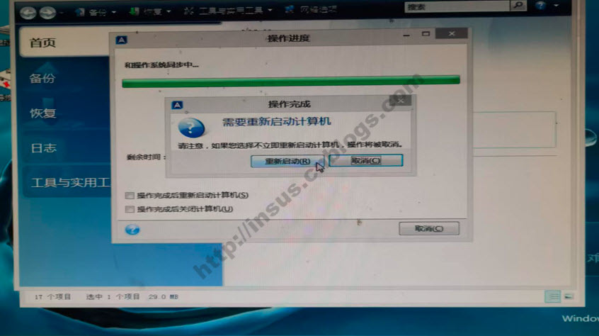 恢復完成了,此時,退出U深度和64GB U盤,插上Windows PE U盤。為恢復的系統,加入RAID驅動。