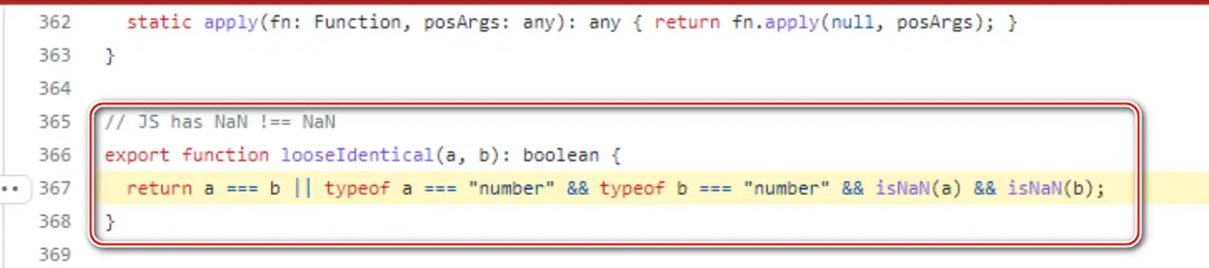 ,這實際上只是與 NaN 情況下的特殊邏輯的 === 比較。