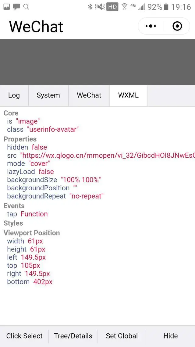 WXML 標籤頁能顯示當前渲染好的視圖的明細: