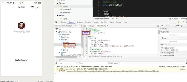 在上一篇微信小程序視圖源代碼的講解裏,我們通過逐行講解代碼的方式,介紹了微信小程序視圖的基本開發思路。但是學習控制器 index.js 的實現,僅僅採取靜態的代碼走查還不夠,我們需要將微信小程序啓動起來,通過單步調試的方式逐行講解,通過控制器的調用上下文能對微信小程序的控制器實現有更深入的瞭解。