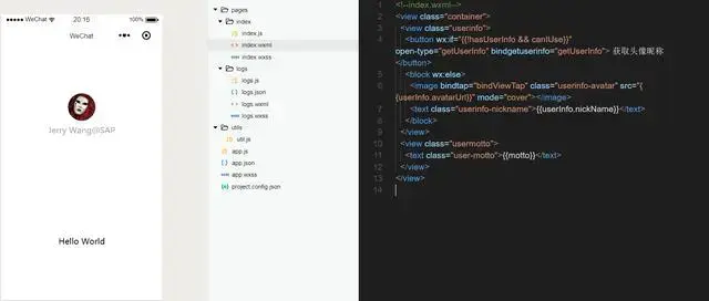 我的日常工作是用一個叫做 SAP UI5 的前端框架做前端開發,剛好 SAP UI5 框架也支持創建 xml 格式的視圖(UI), 和微信小程序的 wxml非常相似。