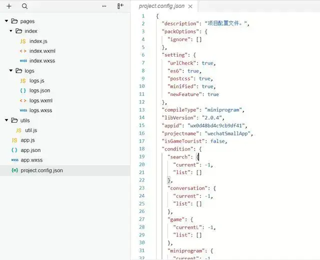 本文以小程序的視圖設計為主,就是下圖所示 pages/index 目錄裏的 index.wxml 文件。