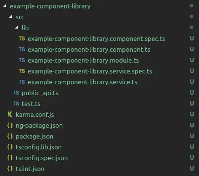 使用 --create-application=false 標誌可以防止 Angular 創建名為“example-component-library”的應用程序,這是我們想要給庫本身而不是測試應用程序的名稱。