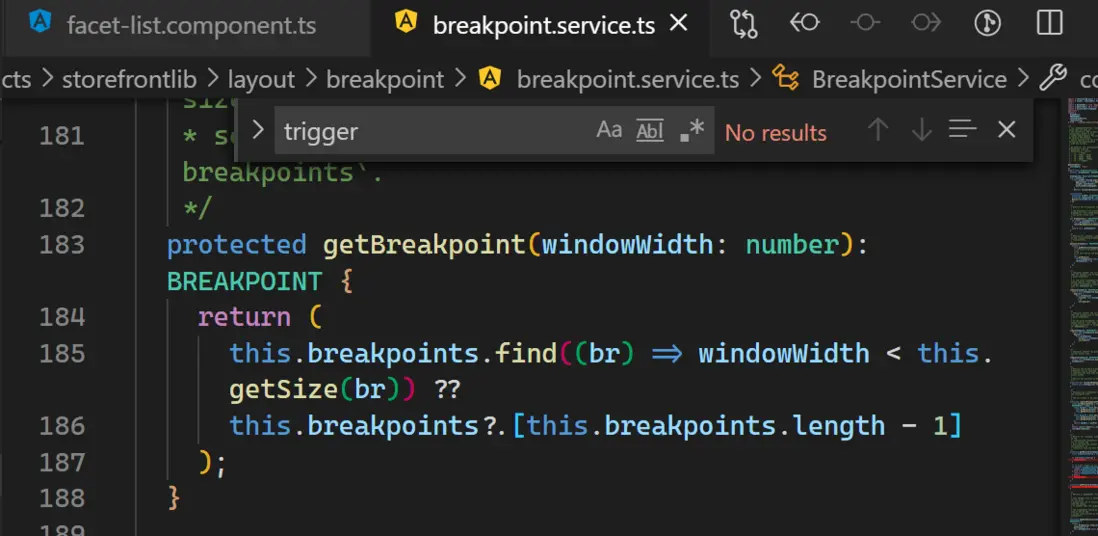 breakpoint.service.ts 的 getBreakpoint 方法,提供了根據當前屏幕寬度返回最合適的 breakpoint: