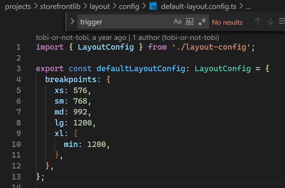 在文件 projects\storefrontlib\layout\config\default-layout.config.ts 裏,定義了各個屏幕尺寸所對應的 breakpoint: