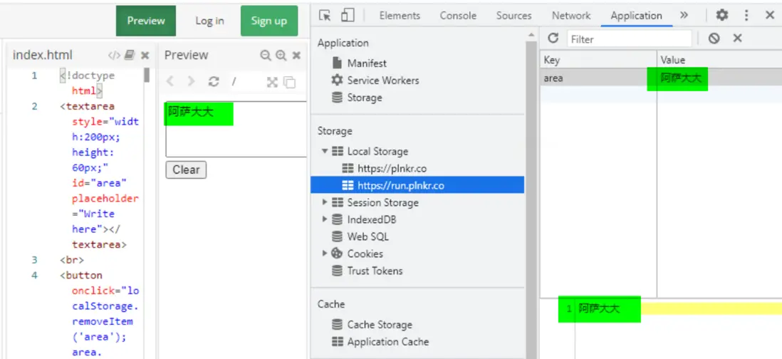 <button onclick="localStorage.removeItem('area');area.value=''">Clear</button>