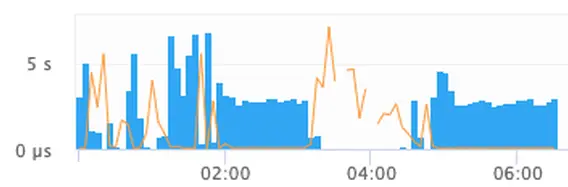 上圖顯示三點半到五點半之間,event loop 的 frequency 驟降,然後 duration 居高不下。