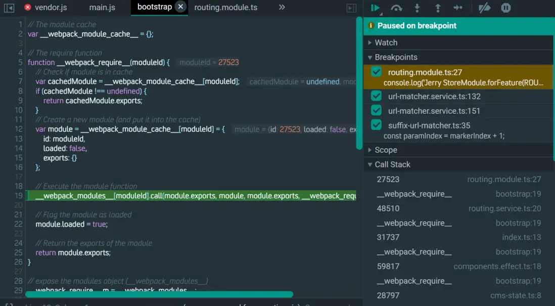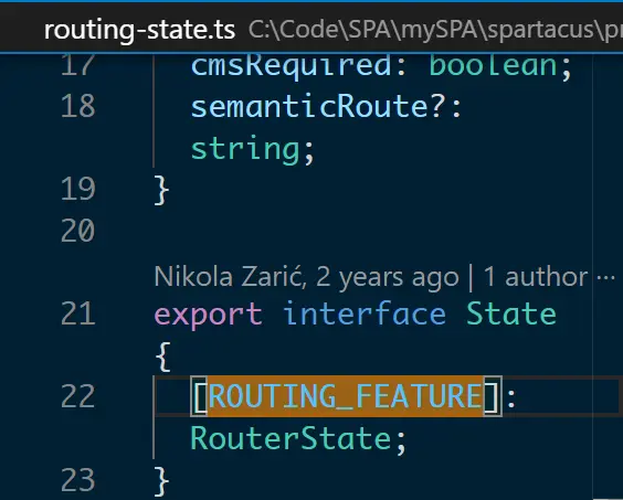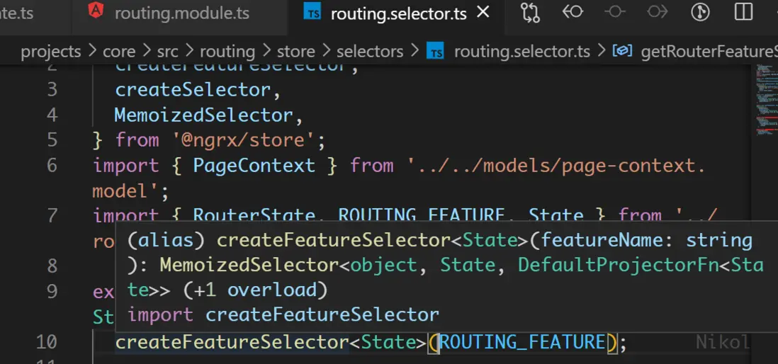 (3) 在 routing.module.ts 裏,作為 StoreModule.forFeature 和 StoreRouterConnectingModule 的輸入參數。