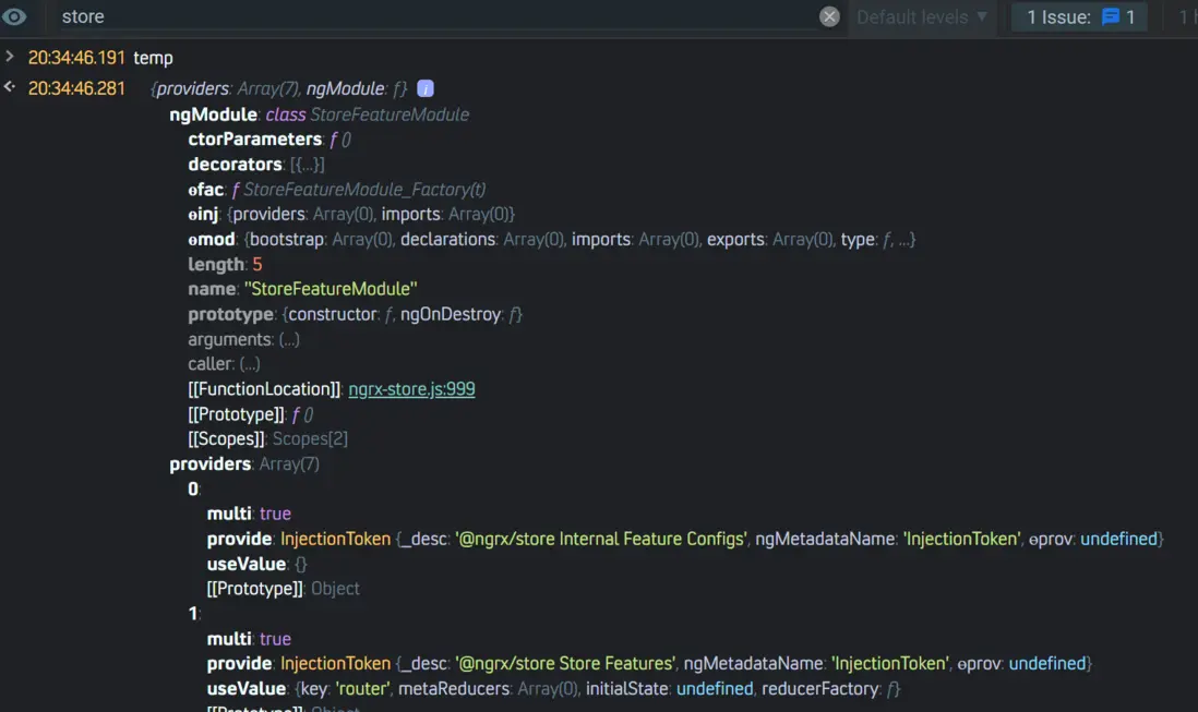 對於場景3,我們看看 StoreModule.forFeature 調用返回的類型為ModuleWithProviders 的數據明細。