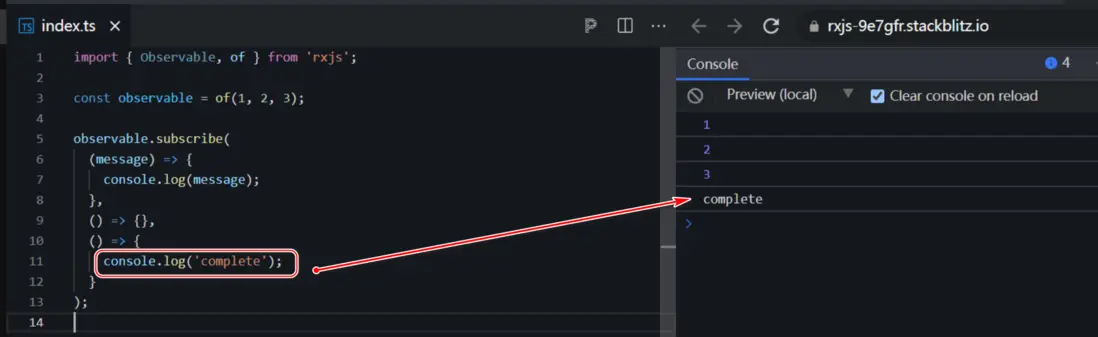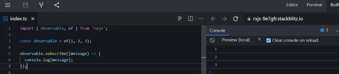 const observable = of(1, 2, 3);