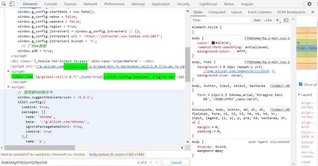 - 某寶網首頁,採用的是阿里自研的前端框架,Kissy: