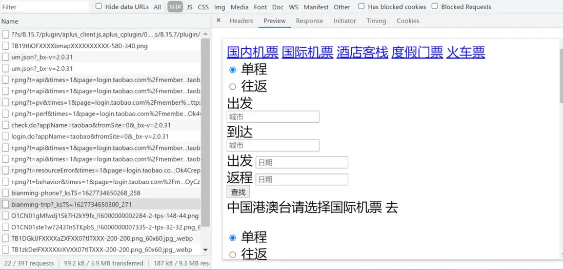 讀取該視圖片段的 HTTP 請求:bianming-trip