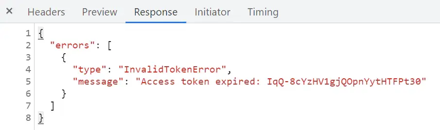 如果此時訪問令牌已經過期,則該請求會收到服務器 401 錯誤的應答: