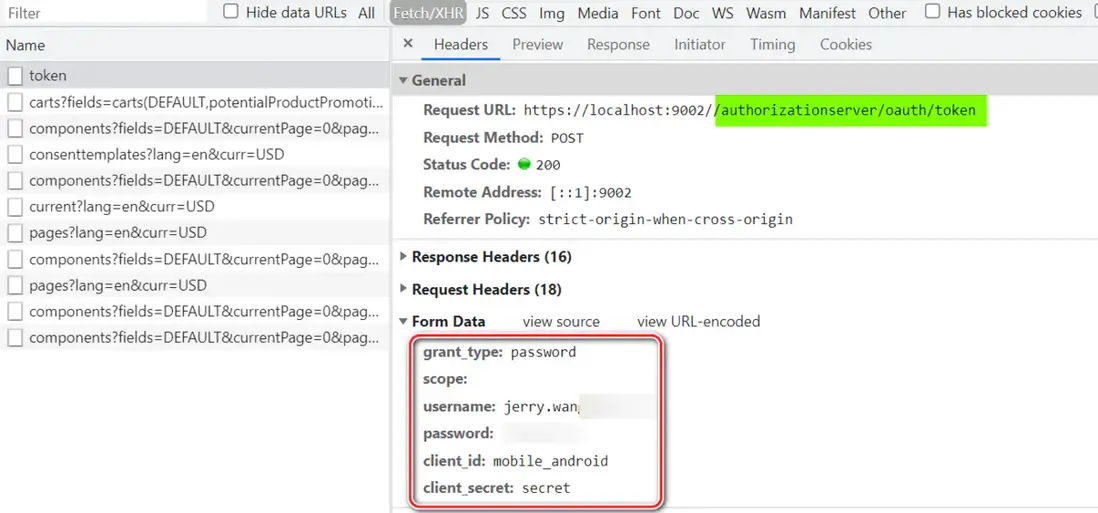 SAP Commerce Cloud UI 調用 Commerce OAuth2 API,endpoint 為 /authorizationserver/oauth/token, 將用户名,密碼,client_id 和 client_secret 去換取訪問令牌(Access Token)和刷新令牌(Refresh Token).