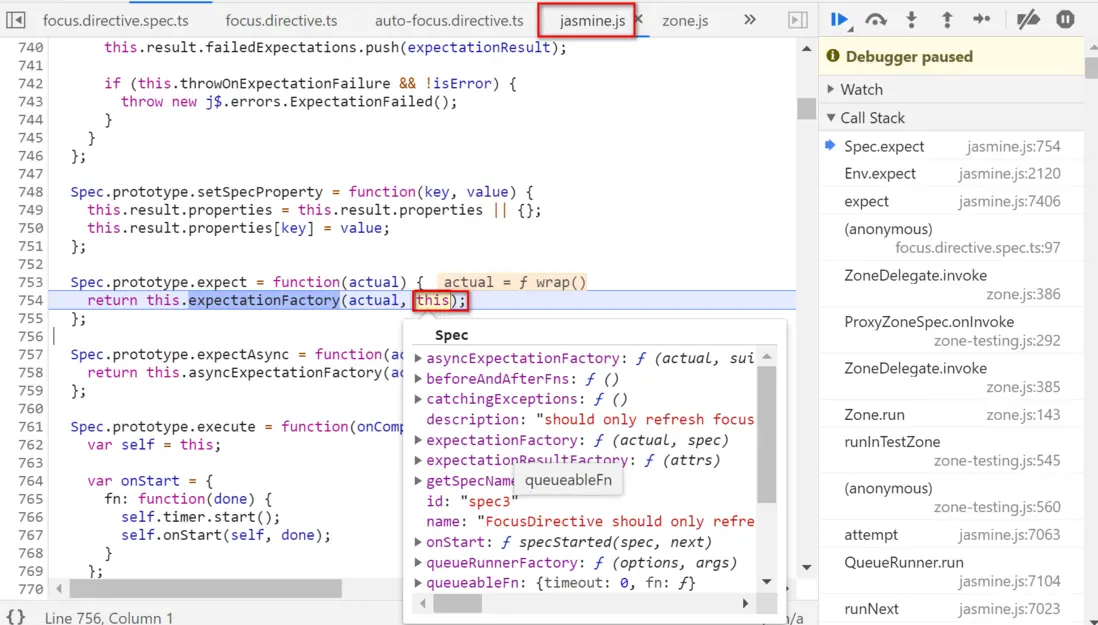 expect方法:基於傳入的spec創建一個expectation. 在我們的例子裏,傳入的spec就是keyboardFocusService.findFirstFocusable被spy之後的版本: