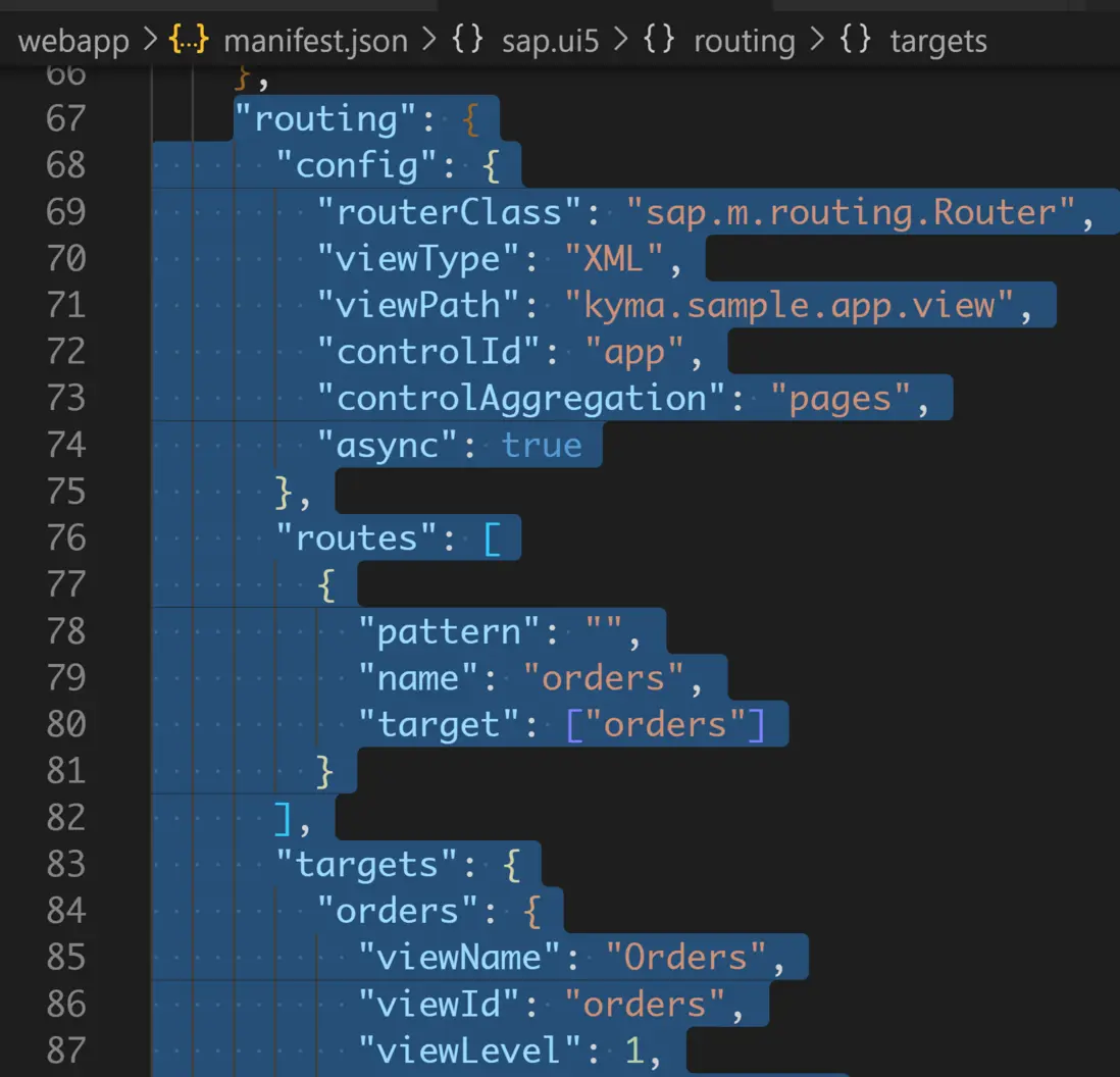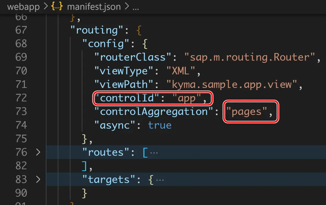 在 manifest.json 文件的 sap.ui5 區域,添加了三個子區域: