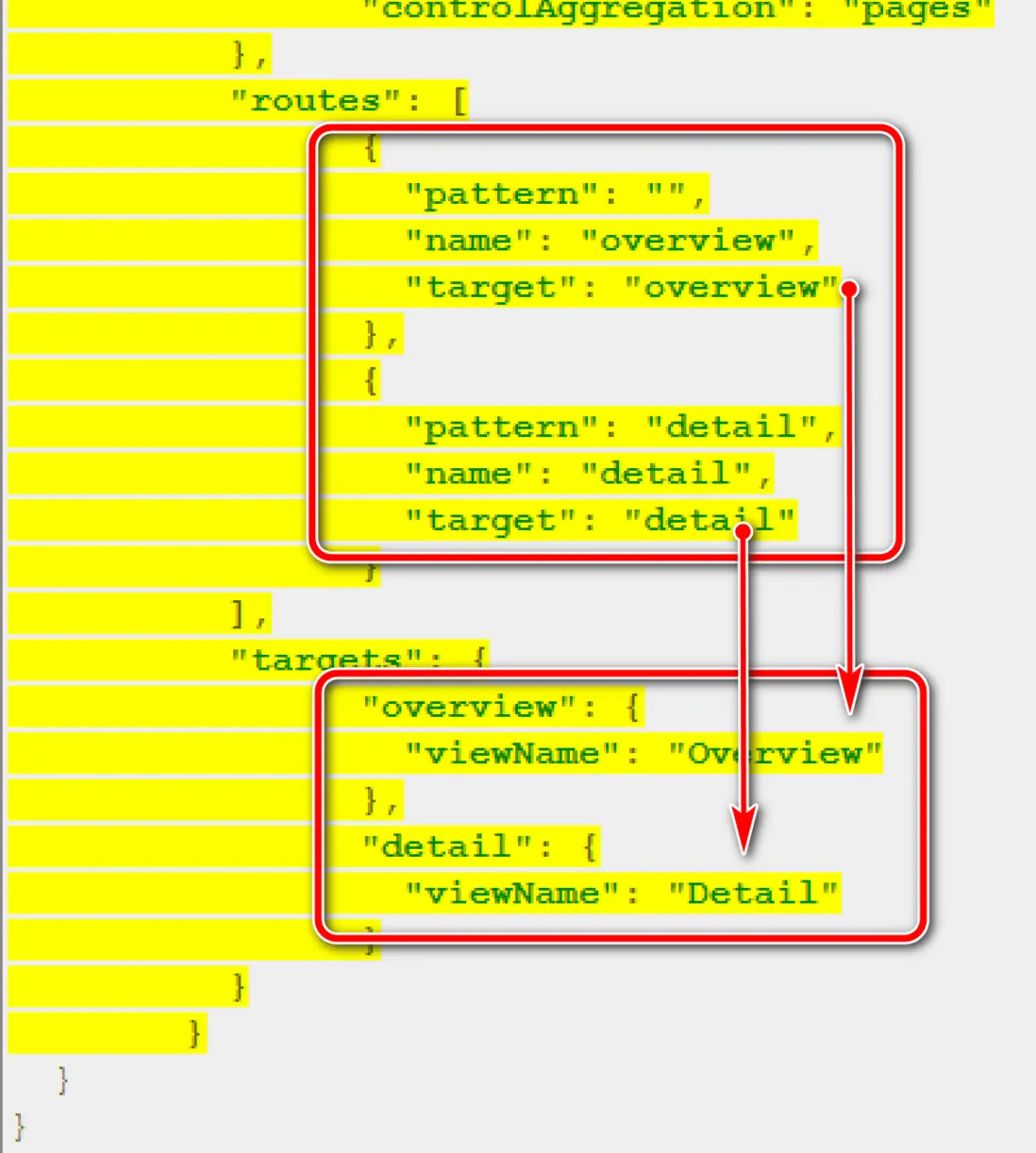 To load and display views automatically, we also specify which control is used to display the pages and what aggregation should be filled when a new page is displayed.