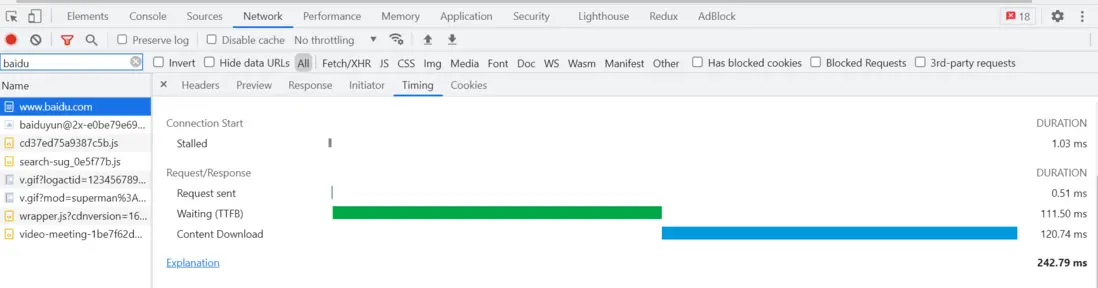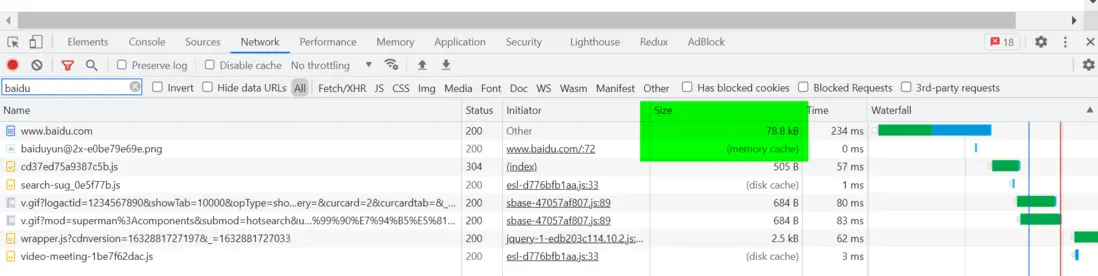 禁掉緩存的情況:請求百度首頁