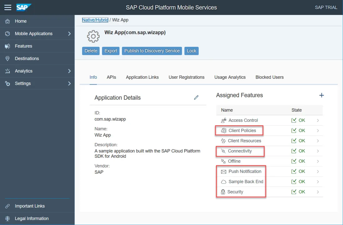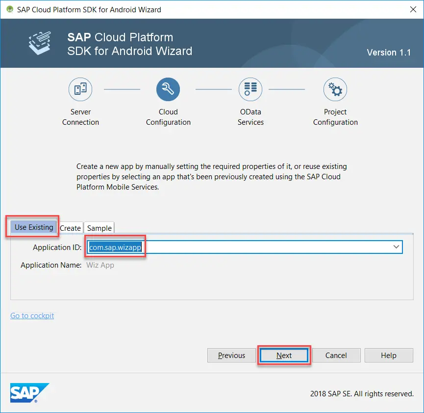 使用SAP Cloud Platform mobile service上已經創建好的應用:com.sap.wizapp: