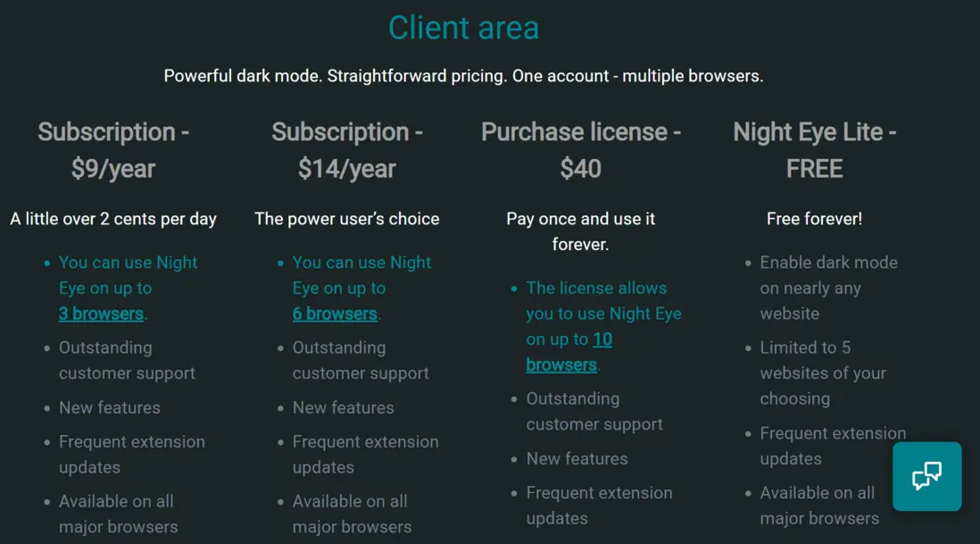 即使不付費,也可以永久使用,只是只能切換最多五個網站為深色模式:
