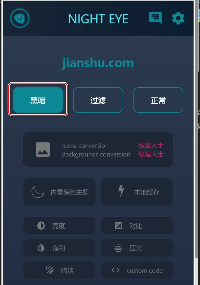 這個擴展的名稱:Night Eye - Dark mode on any website