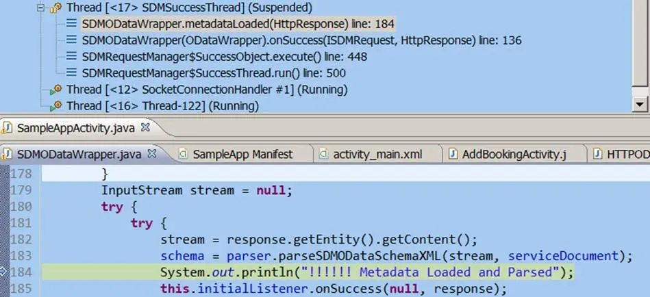 Since service document is loaded, next step is to try to load meta data. This is a state machine.