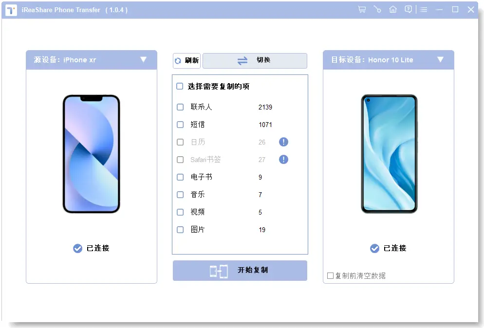 接下來,按照使用 iReaShare Phone Transfer將長視頻從 iPhone 發送到 Android 的詳細步驟進行操作: