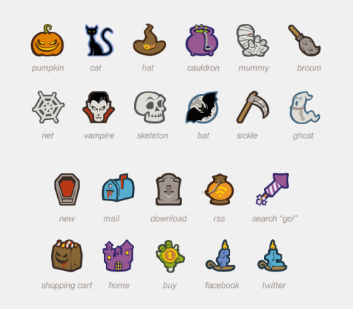 Halloween is just around the corner, and it’s time to add a few scary and fun icons to your projects. Here’s a set of 19 icons that are all available in AI, EPS, PDF, SVG and PNG formats. It was designed and created by Manuela Langella and is free to be used in private as well as commercial projects.